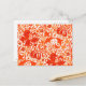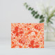 Postcard in einem Vintagen William Morris Blumendruck stylisierter Lilien und Iren, digital verstärkt und farbig, in Lichttönen bis tief Mandarin Orange auf weißem Hintergrund, digital farbig und verstärkt