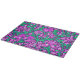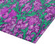 Schneidebrett im William Morris, Jugendstil, Textil-Aufdruck von Reisen und Blätter, digital verstärkt und farbig, in sanften Orchideen und Türkis, auf einem tief amethystischen lila Hintergrund