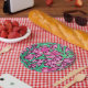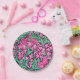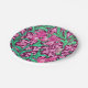 Teller in William Morris, Art Nouveau, Textilien von Reisen und Blätter, digital verstärkt und farbig, in Fuchsia und Eispink, Pfauengrün und Weiß, auf lila Hintergrund