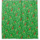 Duschvorhang im William Morris Art Nouveau Textilmuster aus lykischen Ästen und Blätter, in Limonen und tiefgrünen Farbtönen, mit roten Lychefrüchten und gelben Blüten, auf einem hellgrünen Hintergrund