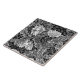 Fliese in einem Kunst Williams Morris Nouveau Textilmuster, digital erhöht und - stylized Pfingstrosen und Blätter in den Schatten des Lichtes zu mittlerem Grauem/zum Grau und zum Weiß gegen einen schwarzen Hintergrund gefärbt