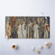 Le dessin est un collage de deux peintures de Morris "Quest for the Holy Grail Tapestries". La "Quest for the Holy Grail Tapestries : Verdure with Deer and Shields" (1900) de William Morris est une oeuvre d’art exquise qui reflète la maîtrise de l’artiste dans la combinaison de la nature avec des thèmes mythologiques et médiévaux. Cette tapisserie, qui fait partie d'une série explorant la quête du Saint Graal, présente un paysage verdoyant, rempli de feuillage vibrant et de branches entrelacées. Au premier plan, les cerfs sillonnent gracieusement la forêt, leur présence ajoutant un élément de vie à la scène tranquille. L'ajout de boucliers suggère un contexte médiéval ou chevaleresque, liant la pièce à la légende du Saint Graal et des chevaliers à la recherche de l'honneur et de la gloire. Les détails complexes du feuillage, la beauté calme des animaux et les boucliers symboliques évoquent à la fois le monde naturel et la quête séculaire de la relique sacrée, incarnant le style de Morris mêlant art artistique et narration. Les tons verts et terreux accentuent l’atmosphère intemporelle et vintage de la tapisserie, ce qui en fait une représentation puissante de la vision de Morris d’une relation harmonieuse entre la nature et le passé mythique. La "Quête pour les Tapisseries du Saint Graal : l'Armement et le Départ des Chevaliers" (1895-1896) de William Morris est une magnifique représentation du voyage chevaleresque, tiré de la légende du roi Arthur et de ses chevaliers à la recherche du Saint Graal. Cette tapisserie capture un moment dramatique pendant que les chevaliers se préparent à la bataille. L'image est remplie de couleurs riches et vibrantes qui reflètent l'intensité et la grandeur du monde médiéval. On voit les chevaliers revêtus de leur armure, de leurs boucliers ornés de motifs héraldiques, et leurs expressions incarnent la détermination et l'honneur alors qu'ils se lancent dans leur quête. Les détails complexes de l’armure des chevaliers, les chevaux qu’ils conduisent et les paysages luxuriants contribuent à la grandeur de la scène. L’utilisation caractéristique des teintes riches et profondes de Morris, en particulier les rouges, les dorés et les bleus, renforce l’atmosphère antique et vintage de la pièce, créant un sens immersif de l’histoire et de la légende.