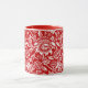 Tasse in einem Vintagen William Morris, Jugendstil, floraler Ausdruck stylisierter Sonnenblumen, digital verstärkt und farbig, in tiefrot und weiß, mit hellen Korallen betont