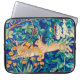Laptop-Ärmel in einer William Morris-Illustration zweier Hasen, die durch eine wilde Waldlandschaft laufen - digital verbessert und farbig