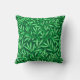 Kissen in einem William Morris Art Nouveau Textil-Muster aus stilisierten Weidenzweigen und Blätter in hellen Kalkgrün, mit weißem Akzent, auf einem dunklen Smaragd / pine grünen Hintergrund