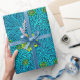 Verpackungspapier in einem Vintagen William Morris, Kunst Nouveau, Ringelblumendamastdruck des Blätter und der Blumen, digital erhöhte und färbte, in den Schatten des Türkises, des Aqua und des Kobaltblaus, betont mit gelbem und Limonem Grün, auf einem dunklen Marineblauhintergrund