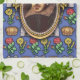 Der Barde - der ursprüngliche Entwurf auf diesem Geschirrtuch ist ein Porträt William Shakespeares Autor. Das Porträt ist in einem verzierten ovalen Goldrahmen mit Bändern und in einer Krone auf die Oberseite. Die blaue Hintergrundtapete wird mit den Schlössern, Kronen Könige und gelben und roten Blumen verziert und holt, um sich den Romance, die Tragödie und um die Komödie seiner Spiele und Poesie zu kümmern.