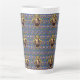 The Bard - Das originelle Design auf dieser Latte Tasse ist ein Muster, das mit einem Portrait des Autors William Shakespeare gemacht wurde. Das Porträt ist in einem verzierten ovalen Goldrahmen mit Bändern und einer Krone oben. Das blaue Hintergrundbild ist mit Burgen, Kronen und gelben und roten Blume geschmückt und erinnert an Romantik, Tragödie und Komödie seiner Stücke und Poesie.