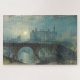 Alnwick Castle . Joseph Mallord William Turner (1775 - 1851). Niedliche Nachtlandschaft in dunkelblauen Tönen. Im Vordergrund steht eine Hirschgruppe. In der Mitte befindet sich eine Brücke über den Fluss. Der Mond ist im Sonnenuntergang. Reproduktion berühmter Kunstbilder im öffentlichen Bereich.