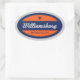Ovale Beschilderung in den Stadtvierteln von New York City. Offizielle Orange- und Blautöne von NYC. Williamsburg-Viertel von Brooklyn. In den Brooklyn Vierteln Bath Beach, Bay Ridge, Bed-Stuy (Bedford Stuyvesant), Bensonhurst, Boerum Hill, Boro Park, Brighton Beach, Brooklyn Heights, Brownsville, Bushwick, Canarsie, Carroll Gardens, Clinton Hill, Cobble Hill, Coney Island, Eigene Höhen, Cypress Hills, Dyker Heights, Farragut, Flatbush, Flatlands, Fort Greene, Gowanus, Gravesend, Greenpoint, Kensington, Little Odessa, Marine Park, Midwood, Park Slope, Prospect Heights, Red Hook, Sheepshead Bay, Sunset Park, Vinegar Hill, Williamsburg, Wingate