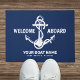 Willkommen an Bord der Nautical Navy Blue Bootname Fußmatte