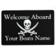 Ein themed Willkommen des Spaßpiraten an Bord des Entwurfs mit einer Piratenflaggepiratenflagge mit dem Schädel und die gekreuzten Schwerter- und kundenspezifischetext-Vorlagen, zum einer einzigartigen Matte für Ihr Boot herzustellen addieren gerade Ihren Yacht- oder Schiffnamen, der für alle Seeleute und Sportsegler mit einer Richtung des Spaßes perfekt ist.