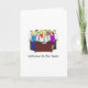 Eine Gruppe von Mitarbeitern in einem Büro, stehend hinter einem Mann, der an einem Schreibtisch mit einem Stift in der Hand sitzt. Eine tolle Karte oder ein Geschenk, um ein neues Teammitglied willkommen zu heißen.