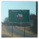 Eine Keramik mit einem Foto des Willkommenszeichens von Texas.