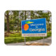 Staat-Schild für Georgien heißt Besucher in einem schattigen Erholung-Bereich willkommen, wo auf dem Schild steht: "Wir sind froh, dass Georgien auf dem Geist ist."