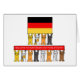 Cartoon Katzen halten eine große deutsche Fahne und ein langes, schmales rotes Banner, das "Willkommen bei unserem Devisenstudent" sagt. Das Bild hat einen knalligen weißen Hintergrund.
