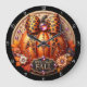 Diese atemberaubende Wanduhr besticht durch einen großen orangefarbenen Kürbis, der mit einem stilvollen leopardenfarbenen Bogen und glänzenden Juwelen geschmückt ist. Umgeben von lebhaften Blume und Blätter im Herbst wird ein "WELCOME FALL"-Schild sichtbar angezeigt. Diese elegante Uhr eignet sich hervorragend, um jeder Wohngestaltung eine Touch herbstlichen Charmes und saisonale Festlichkeit hinzuzufügen. Bearbeiten Sie die Farbe der Uhrennummern im Design-Tool nach Ihren bevorzugten Farben.