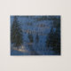 In dieser fantasieähnlichen Szene führt in einer Winternacht ein eisiger Weg zwischen Schneeflocken über den Hügel und über den Fluss zu einer einladenden Hütte mit Kerzen im Fenster. Der Weg und die Steine über das Wasser leuchten durch wärmstens leuchtende Laternen, und ein Feuer am Ende des Weges lässt Funken in die kalte Nachtluft.