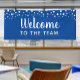 Herzlich willkommen im Team Banner mit vollständig anpassbarem Text. Confetti kreist und Sterne an der Spitze. Ändern Sie den blauen Hintergrund in eine andere Farbe, wenn Sie möchten. Willkommen bei neuen Mitgliedern oder Mitarbeitern mit einem lustigen Banner.