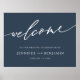 willkommen | Navy Blue Calligraphy Simple Wedding Poster