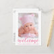 Willkommen Neue Baby Ankündigung Pink Script Postcard