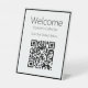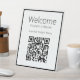 Herzlich willkommen bei Ihren Besuchern mit diesem schwarz-weißen Tischschild. Unten ist ein Display-Bild. Sie können das Bild durch Ihren eigenen QR-Code ersetzen, um Ihre Kunden auf das heutige Menü oder eine Preisliste zu schicken. Der Anzeigetext kann bearbeitet werden, um den gewünschten Text anzuzeigen. Text anzeigen: Begrüßen Sie Elizabeths Bar-Kaffeescan für das heutige Menü.