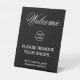 Das individuell anpassbare Kartenzeichen für Zuhause-Showings bietet ein klassisches Schwarz-Weiß-Design: "Willkommen, entfernen Sie Ihre Schuhe" mit benutzerdefinierten Informationen für Gäste Wi-Fi-Informationen.