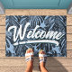 Willkommen Tropical Boho Blue Jungle Leaves Fußmatte