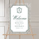 Elegantes katholische Hochzeits-Willkommensschild mit schöner viktorianischer Krone und aufwendigen Details.