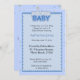 Blauer Hintergrund mit blauen und weißen Worten, die Welcome Baby sagen. Stellen Sie sich Ihre Einladung mit Ihren Babydusche-Details individuell zusammen.