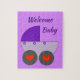 Willkommenes Baby. Lustiger Entwurf eines lila Baby Stroller, mit roten Herzen auf Rädern. Wenn Sie Baby erwarten oder ein Baby zu Hause Ihre Liebe zur Welt mit diesem süßen zeigen lassen, entwerfen Sie.