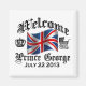 Willkommen Prinz George! Britische Fahne mit Kronen- und Babywagen, um Seine Königliche Hoheit Prinz George von Cambridge willkommen zu heißen. Feiern Sie das Royal Baby von William und Kate und lassen Sie sich von einem gepflegten Sake verwöhnen. Keine Vervielfältigung erlaubt