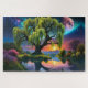 Willow tree unter einem Vollmond und ein bunter Sternenhimmel bei Sunset AI ART CREATED BY MINX267
