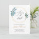 Moderne und elegante Save the Date-Karte mit Aquarellfarben-Blätter rund um einen Goldrahmen mit Ihren Hochzeitsdetails in modernem Script-Schriftart. Die Karte lässt sich einfach für jede Veranstaltung anpassen, indem Sie Ihre Veranstaltungsdetails, den Schriftart-Stil, die Schriftart-Größe und den gewünschten Wortlaut durch Anklicken des Buttons "Personalisieren" hinzufügen. Fügen Sie Ihr Lieblings-Foto auf der Rückseite der Karte hinzu.
