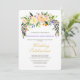 Le haut de cette jolie faire-part de mariage est agrémenté d'une image de demi-couronne fleurie couleur aquarelle. Les couleurs utilisées comprennent la mandarine, l'or, le jaune, le bleu, le violet, le vert et plus. Votre texte personnalisé est en gris moyen et bleu violet au centre, avec du texte stylisé en or qui dit "Mariage Celebration". Les images et le texte sont placés sur un élégant arrière - plan blanc. L'arrière de l'invitation est la pêche légère à la mandarine. Belle, moderne et chic ! Les couleurs de cette invitation sont appropriées du printemps à l'automne. Assurez-vous de voir les produits mariages correspondants dans notre magasin.