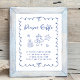 Niedliches Windeln-Drop-off-Zeichen für Ihre Babydusche, das mit einem französisch-blauen, mit Bögen verzierten Rahmen, blau-blauen, handgezeichnet Herzenzeichnungen, Sternen, Kuchen- und Kinderzimmer-Dekor und "Windeln-Raffle" in einem lustigen blauen Drehbuch präsentiert wird.