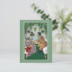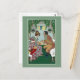 Eine Frau und ein Mann sitzen auf den gegenüber liegenden Bänken im Garten. Die Frau zieht Garne in eine Kugel und der Mann hält das Garn für sie. Auf beiden Seiten des Fensters stehen winzige Bonsai-Bäume. Der Mann trägt einen üppigen Krawatt, einen braunen Mantel und Stiefel. Sein Hut ist auf dem Boden. Die Frau hat ihr Haar in einer Brötchen und trägt ein graues und rotes Kleid und einen Schal. Ihr Hut mit einer großen roten Blume ist neben ihr auf der Bank. Diese Vintage Jugendstil-Postkarte stammt aus dem Jahr 1909.