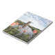 Memo notepad with a windmill and a canal with pink dahlia flowers in a landscape in Holland.