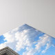 A floating window in the sky reveals an interior room where rain falls upward.