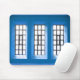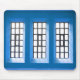 Abstrakte Ansicht der symmetrischen Fenster auf blauer Wand