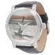 Uhr, Vintage Männeruhr mit schwarzem Lederarmband