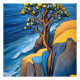 Von den sonnigen Küstenstreifen aus blickt ein einsamer Baum über das Blaue Meer