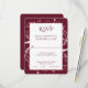 Senden Sie Ihren Gästen eine einfache und elegante Wine Blüh Wedding RSVP Card mit Ihrer Einladung. Das Design der Response-Karte zeichnet sich durch eine elegante, weiche Farbe aus, geblüht mit farblich abgestimmtem Hintergrund. Personalisieren Sie Ihre Einstellungen mit dem Datum der Antwort und den Menüoptionen. Mit diesem Design sind auch weitere Hochzeitswaren erhältlich.