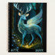 Ein Fantasiewesen, das an ein Hirsch mit Flügeln erinnert, geht durch einen nächtlichen Feenwald auf diesem schönen Planer. Perfekt für alle, die Fantasie und fantastische Tiere Lieben!