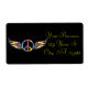 Klassisches Rundfriedenssymbol im Hippie-Stil mit gefederten Vogelflügeln zum Anpassen, Personalisieren, indem Sie Ihren Namen ändern