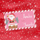 Cute pink and red Christmas gift tag sticker for kids featuring a winking Santa getting ready to go down a chimney . Personalize it with the child's name using the template field . Modify the giver's name as well if you wish .