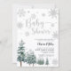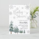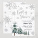 Winter Baby Dusche Einladung mit Silbereffekt Glitzer und Aquarellkiefern.