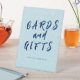 Begleiten Sie Ihre Gäste mit einem stilvollen blauen Tafelschild mit Karten und Geschenken! Dieses im Winter inspirierte Podest-Schild ist so konzipiert, dass es mit der Snow Flurry Sprinkle Kollektion harmoniert. Machen Sie Ihr Baby-Sprinkle oder Winterdusche extra organisiert mit diesem charmanten Tafelschild Karten & Geschenke. Mit einem sanften blauen Hintergrund mit spielerischen Schneeflocken Akzenten passt es sich perfekt der Erholung der blauen Snow Flurry Sprinkle Kollektion an. Set auf einem Sockel für eine einfache Darstellung, dieses Schild hilft den Gästen zu wissen, wo sie ihre nachdenklichen Geschenke verlassen und gleichzeitig eine polierte dekorative Touch zu Ihrem Party. Ein schlichtes und festliches Detail, das Ihr Event wunderschön zusammenbringt. Thema: Winter Baby Sprinkle, Schneeflocke, Babydusche Verwendung für: Baby Duschgeschenk Tisch, Sprinkle Dekoration, Winterwunderland Thema Stil: Schild am Tisch, leicht sichtbar, Koordinaten mit voller Kollektion