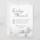 Diese Winterwaldvorder- und Rückenhochzeit lädt zu einer Hochzeit in Urlaubsort ein. Das Design besticht durch einen handbemalten Wald auf Hügeln und Bergen in einer idyllischen Winterlandschaft.