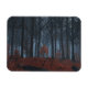 Ein Baumstand an einem bewölkten Wintertag. Die hohen Bäume sind kahl und blätterlos, aber die darunter liegenden Splint haben noch ihre braunen Blätter. Die in fast rosa Farbtönen gehaltenen und gefallenen Blätter bilden einen Kontrast zu den dunklen Stämmen und dem nebelblauen Dunst oben. Dieses Hängen von toten Blätter durch den Winter wird "Marcescence" genannt, und es ist besonders verbreitet in jungen Eichen wie diesen.
